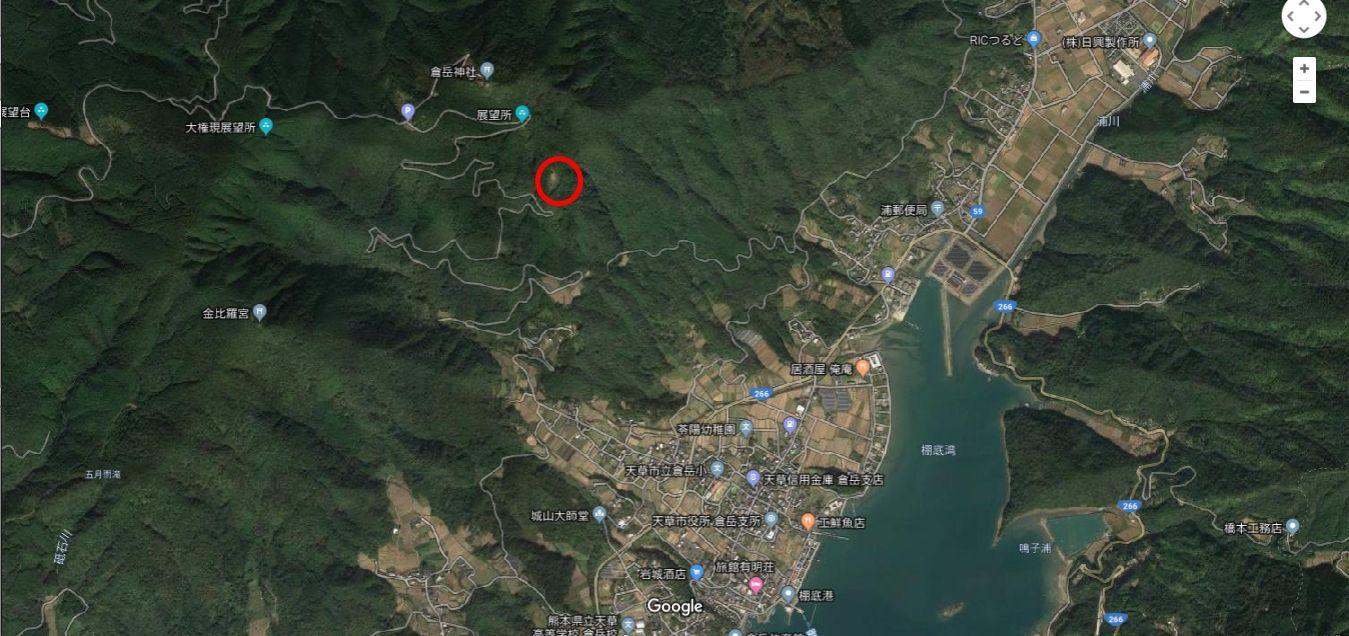 せっかく倉岳まで来たので、健太君がツイッターにアップしていた「倉岳中学校グランド裏」へと向かいました。